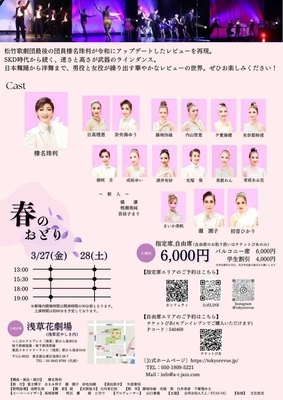 東京レビュー2026『春のおどり』/3月27日(木)、28日(金)公演 【タイトル】 東京レビュー2026『春のおどり』【出 演】 東京レビュー【公演日時】2026年 3月 27日(金) ①開場:12時30分/開演:午後1時00分 ②開場:午後3時00分/開演:午後3時30分 ③開場:午後6時30分/開演:午後7時00分 3月 28日(土) ①開場:12時30分/開演:午後1時00分 ②開場:午後3時00分/開演:午後3時30分 ③開場:午後5時30分/開演:午後6時00分【会 場】 浅草花劇場 東京都台東区浅草2-28-1【料 金】 全席指定 6,000円(税込)※別途送料(税込930円)がかかります【お支払方法】 ①クレジットカード払い / ②代金引換払い※バルコニー席、学生割引の取扱いはございません。※予定数に達し次第、受付は終了いたします。※お申込みのチケットは準備が整い次第、宅急便(ヤマト便)で発送予定です。予めご了承ください。《公演に関する詳細 お問い合わせ》東京レビュー / TEL 050-1809-5221 / Webサイト https://tokyorevue.jp/ 販売価格 6,000円(税込み) 会員価格 (税込み) 通常価格 (税込み) 在庫 商品コード 26030011 JANコード 3月27日(金) 13時00分開演 全席指定 6,000円(税込) 3月27日(金) 15時30分開演 全席指定 6,000円(税込) 3月27日(金) 19時00分開演 全席指定 6,000円(税込) 3月28日(土) 13時00分開演 全席指定 6,000円(税込) 3月28日(土) 15時30分開演 全席指定 6,000円(税込) 3月28日(土) 18時00分開演 全席指定 6,000円(税込) 数量 1 2 3 4 カートに入れる カテゴリー チケット&アーティストグッズ 個別送料 930円 注文数制限 1 ~ 4 販売期間 ~2026/03/17 17:00 ◇送料:全国一律 930円(税込)◇お支払い方法: ①クレジットカード払い / ②代金引換払い※チケットは準備が整い次第、宅急便(ヤマト便)での発送を予定しています。※本公演関して、理由の如何を問わずチケット購入後のキャンセル・変更・払い戻し・返品は一切できません。予めご了承ください。 CATEGORYカテゴリー チケット&アーティストグッズ 梅干 お茶 麺類 海苔 魚介類(加工品含む) 冷凍商品 冷蔵商品 肉類(加工品含む) 冷凍商品 その他食品(菓子・調味料他) 家電 文化放送グッズ 2026年03月 日 月 火 水 木 金 土 1 2 3 4 5 6 7 8 9 10 11 12 13 14 15 16 17 18 19 20 21 22 23 24 25 26 27 28 29 30 31 2026年04月 日 月 火 水 木 金 土 1 2 3 4 5 6 7 8 9 10 11 12 13 14 15 16 17 18 19 20 21 22 23 24 25 26 27 28 29 30 2026年05月 日 月 火 水 木 金 土 1 2 3 4 5 6 7 8 9 10 11 12 13 14 15 16 17 18 19 20 21 22 23 24 25 26 27 28 29 30 31 2026年06月 日 月 火 水 木 金 土 1 2 3 4 5 6 7 8 9 10 11 12 13 14 15 16 17 18 19 20 21 22 23 24 25 26 27 28 29 30 電話問合せ休止日